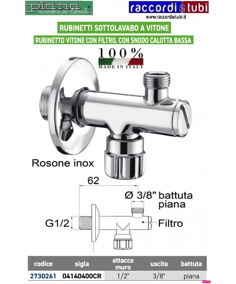 RUBINETTO SOTTOLAVABO A VITONE 1/2X3/8 CON FILTRO SENZA CALOTTA