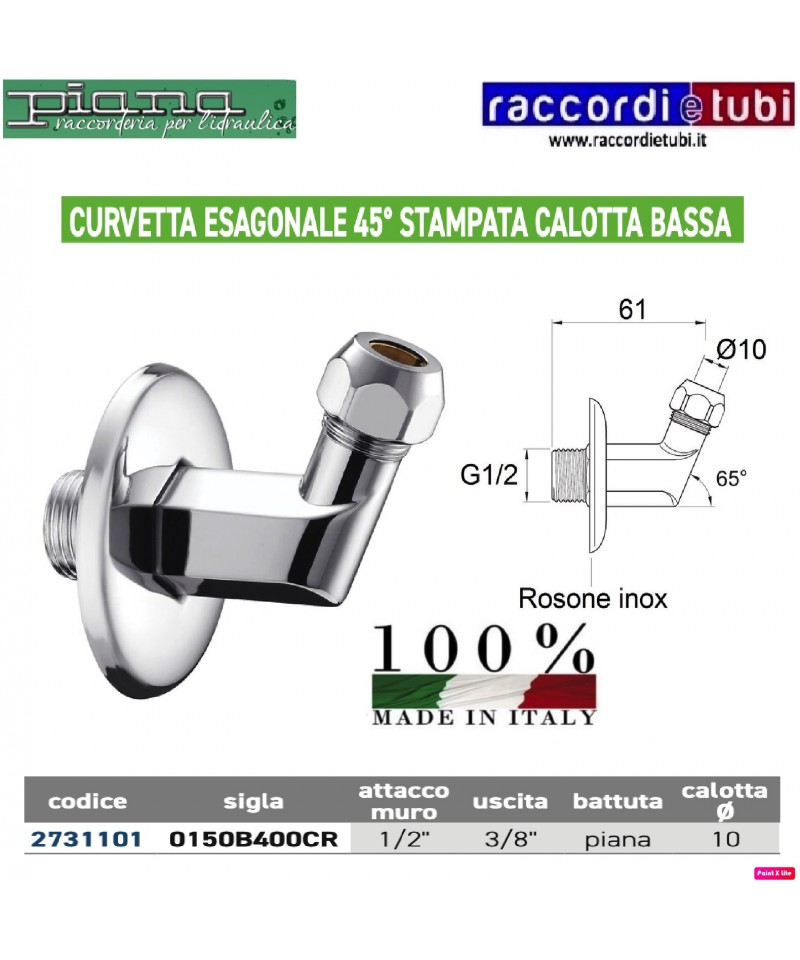 CURVETTA ESAGONALE 45' DIAMETRO 1/2''x10mm CALOTTA BASSA IN OTTONE CROMATO