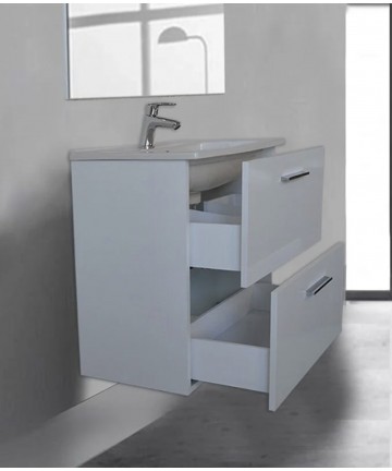 Composione Vitra cm.80x40:Mobile con due cassetti,lavabo in ceramica,specchio con Applique finitura bianco lucido