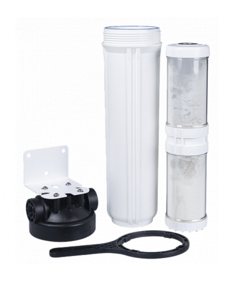 Il Combo Pack include un filtro a carboni attivi a flusso radiale e una cartuccia anticalcare.
