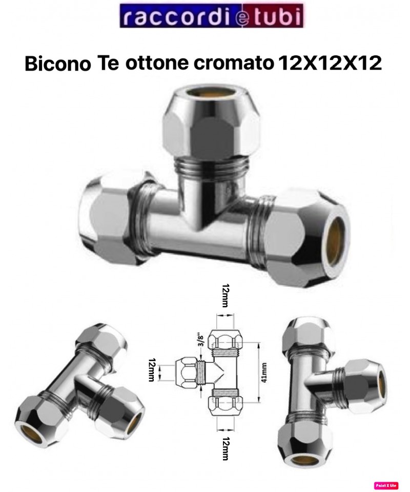 BICONO A TEE IN OTTONE CROMATO 10X10x10mm