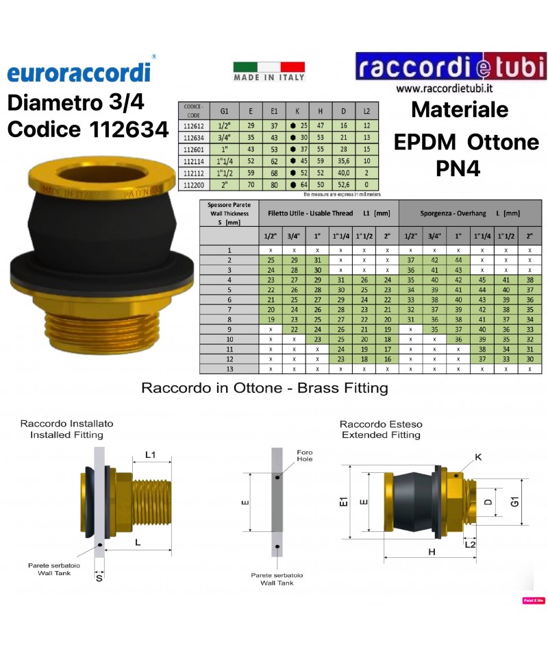 RACCORDO RAPIDO OTTONE CON GUARNIZIONE IN EPDM PN4