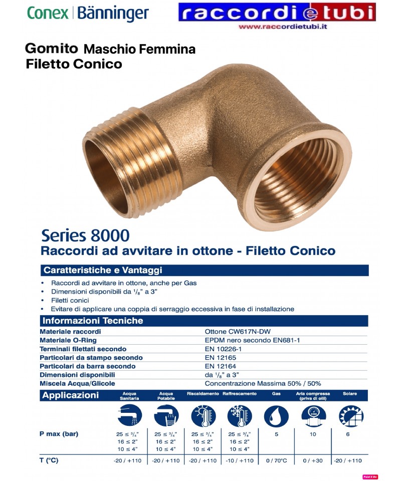 CURVA IN OTTONE A 90° MF IN OTTONE PESANTE FILETTO CONICO DELLA DITTA GUIDI