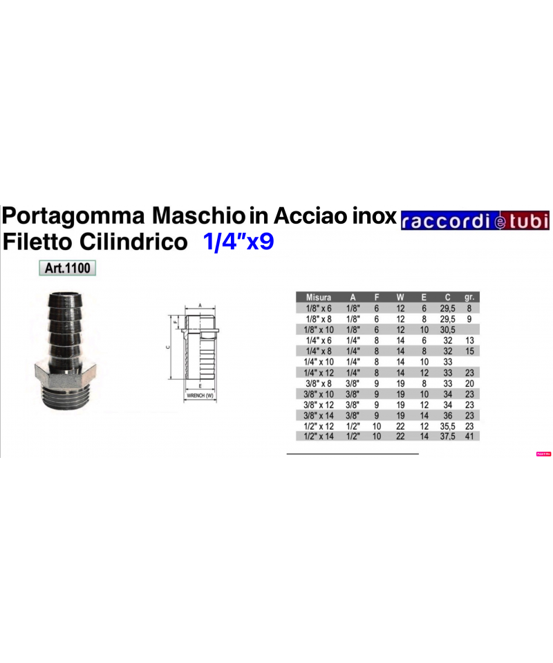 PORTAGOMMA IN OTTONE FEMMINA 1/2''x10mm