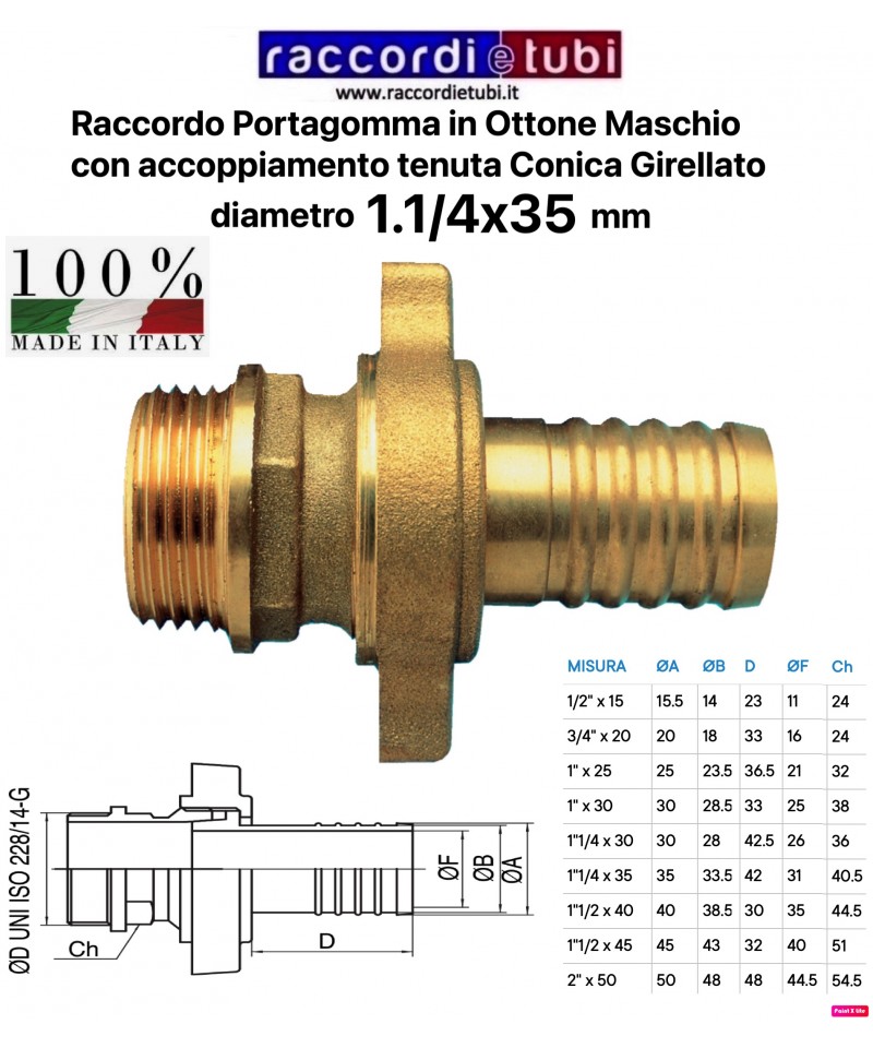 Raccordo in ottone portagomma in ottone per gas GPL DN.10