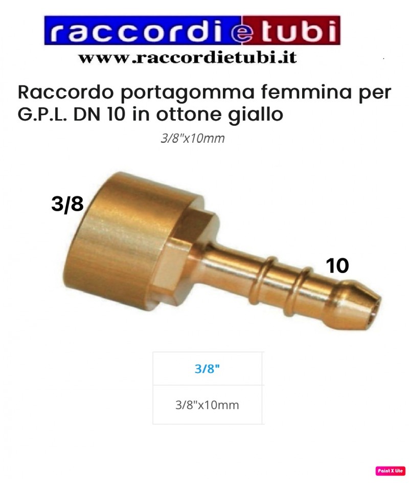 Raccordo in ottone portagomma in ottone per gas GPL DN.10