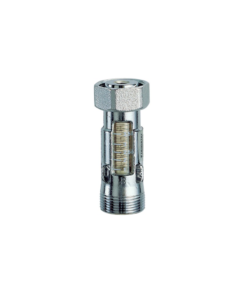 Misuratore di portata cromato. • Scala di misurazione 1 - 3,5 litri al minuto • Scala di misurazione 2 - 8 litri al minuto • Attacco intercambiabile per tubo rame, plastica e multistrato • Adatti per l’installazione su collettori di ritorno