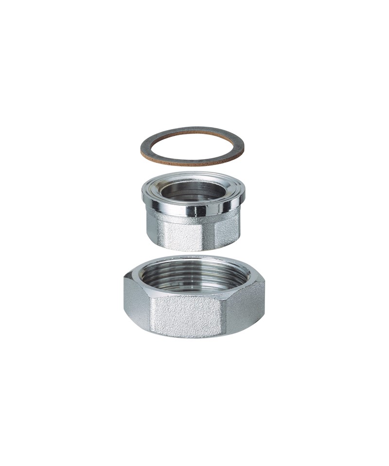 Kit di collegamento cromato per circolatore completo di calotta e guarnizione.