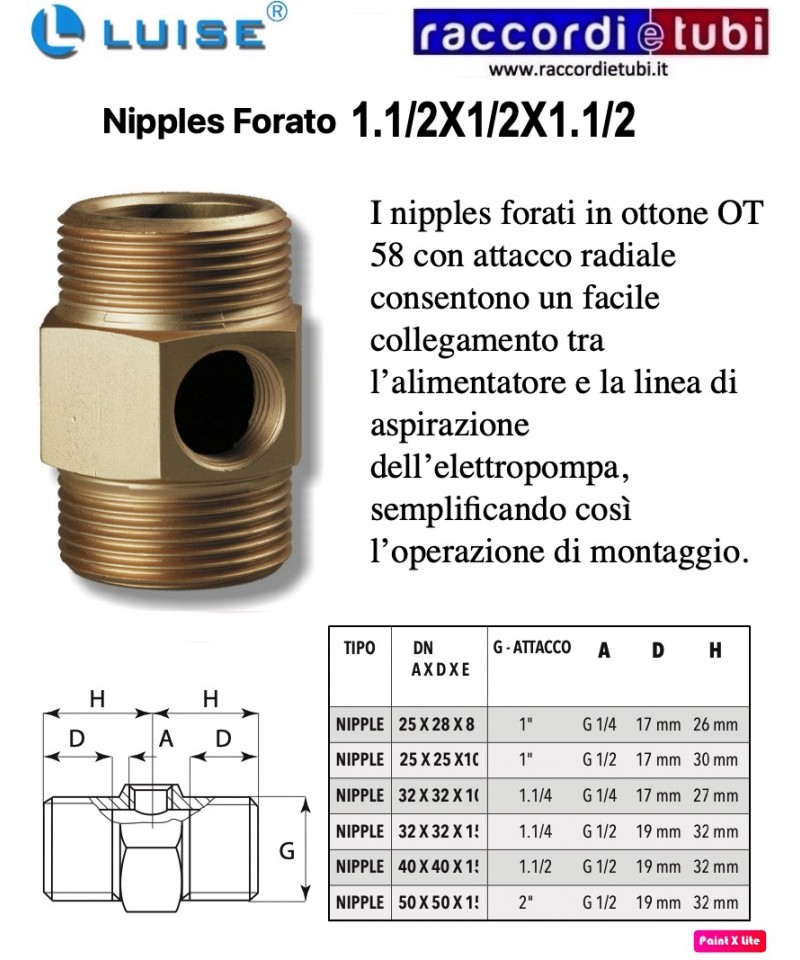 nipples forati in ottone OT 58 con attacco radiale consentono