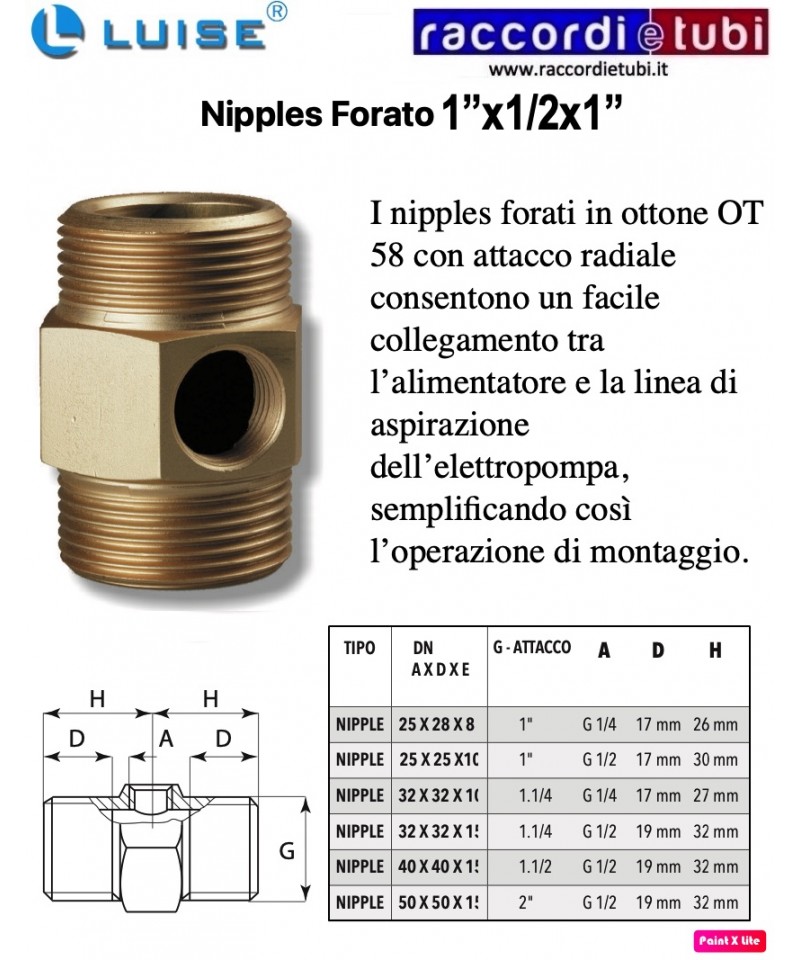 nipples forati in ottone OT 58 con attacco radiale consentono