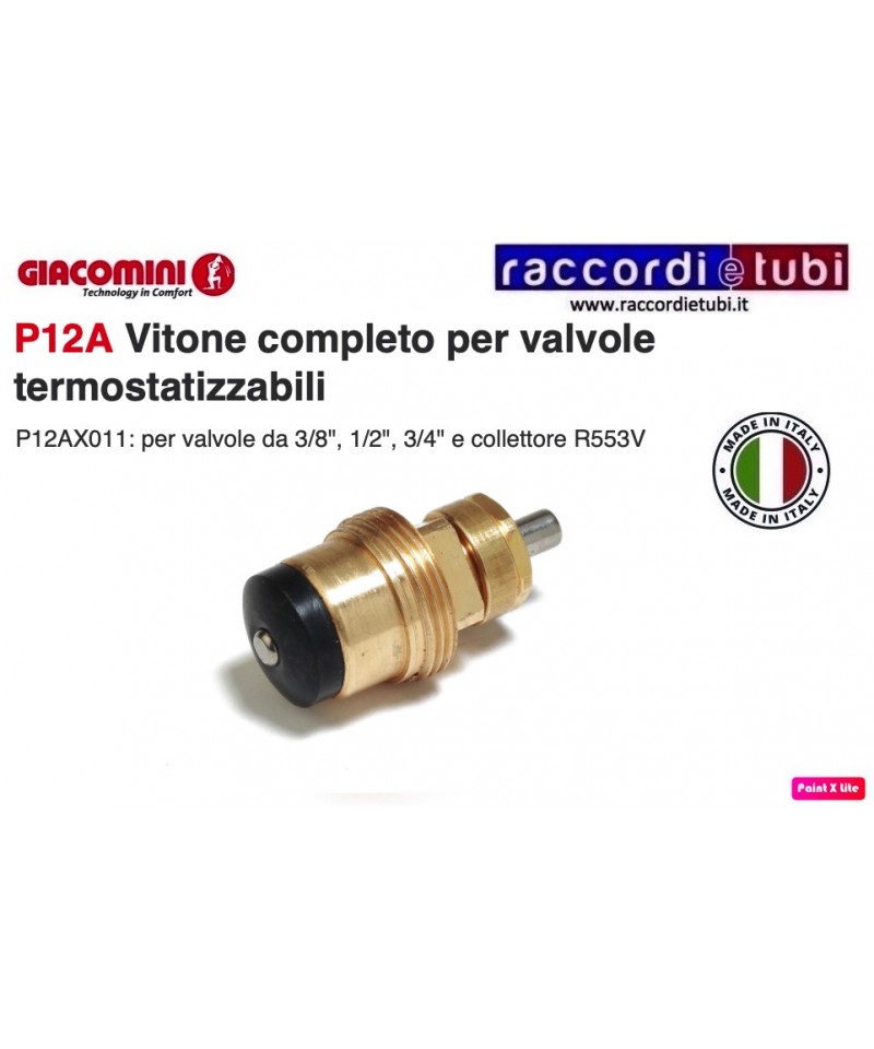 P12AX011: per valvole da 3/8”, 1/2”, 3/4” e collettore R553V.