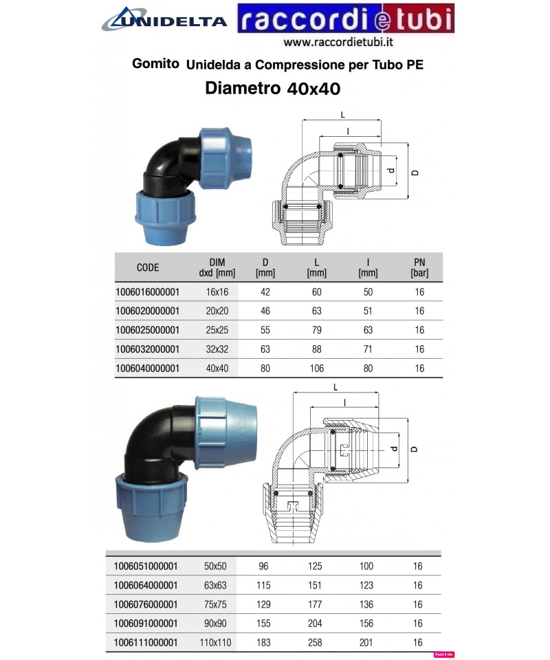 consente l’unione di tubi in PE con tubi in PVC, PVC-C, PP, PE-X, RAME, PIOMBO e