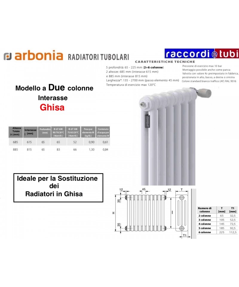 Impossibile non pensarci nella pianificazione moderna del riscaldamento: radiatori tubolari di Arbonia. Gamma di modelli e dimensioni esclusive - con 5 profondità. Performanti e comodi grazie al rapporto ideale fra calore irradiato e convezione. La forma chiara con elementi stondati assicura un rischio minore di infortuni e una maggiore possibilità di pulizia ed igiene. Tantissime possibilità di esecuzione speciale, permettono una integrazione completa in ogni tipologia di ambiente individuale.