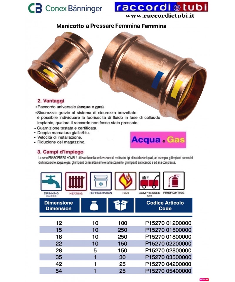 Idoneo per accoppiamento con tubi di rame duri, semi-duri e ricotti secondo EN- 1057