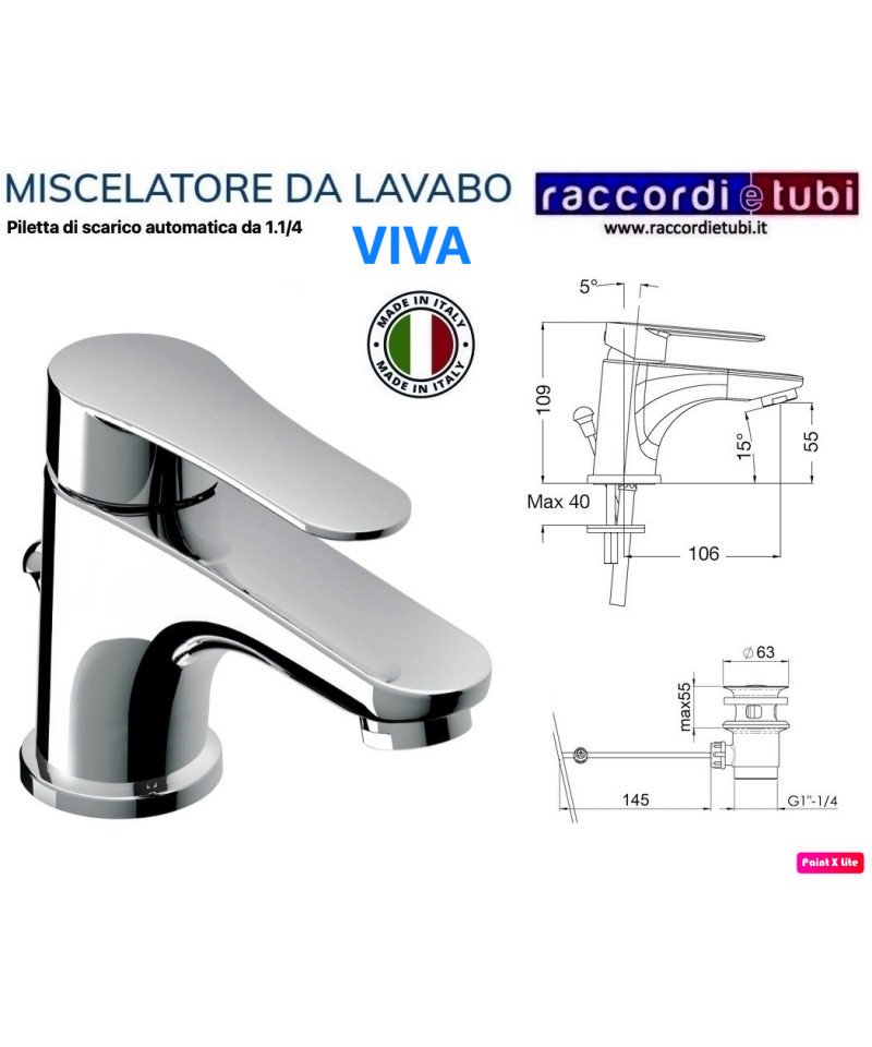 Il pratico miscelatore monocomando è realizzato in robusto ottone con finitura cromata ed è dotato di piletta contraddistinta dal comodo meccanismo clicker per apertura e chiusura rapidi con un semplice click sul tappo.