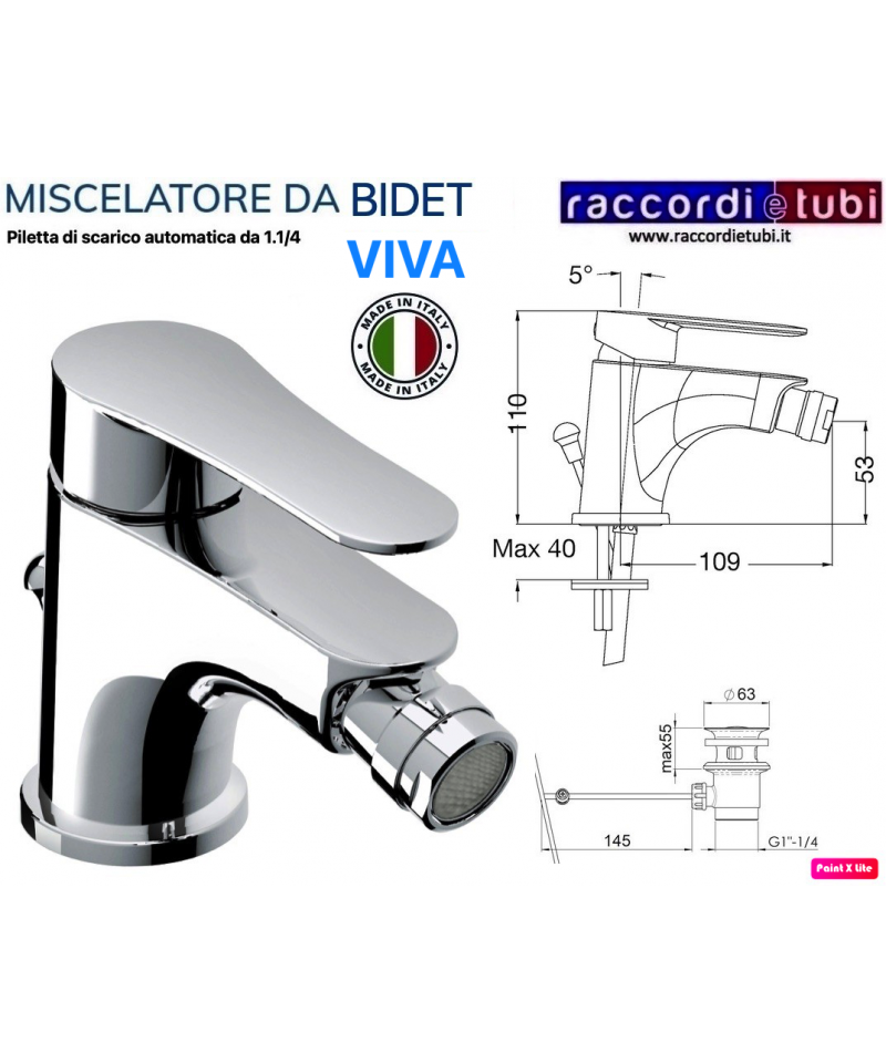 MISCELATORE IN OTTONE CROMATO MADE IN ITALY SERIE VIVA CON CARTUCCIA INTERNA DA DIAMETRO 35
