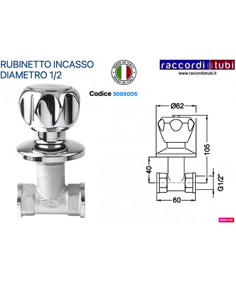 Rubinetteria con vitone 1/2 Tradizionale in Ottone pesante Cromata PRODOTTA INTERAMENTE IN ITALIA