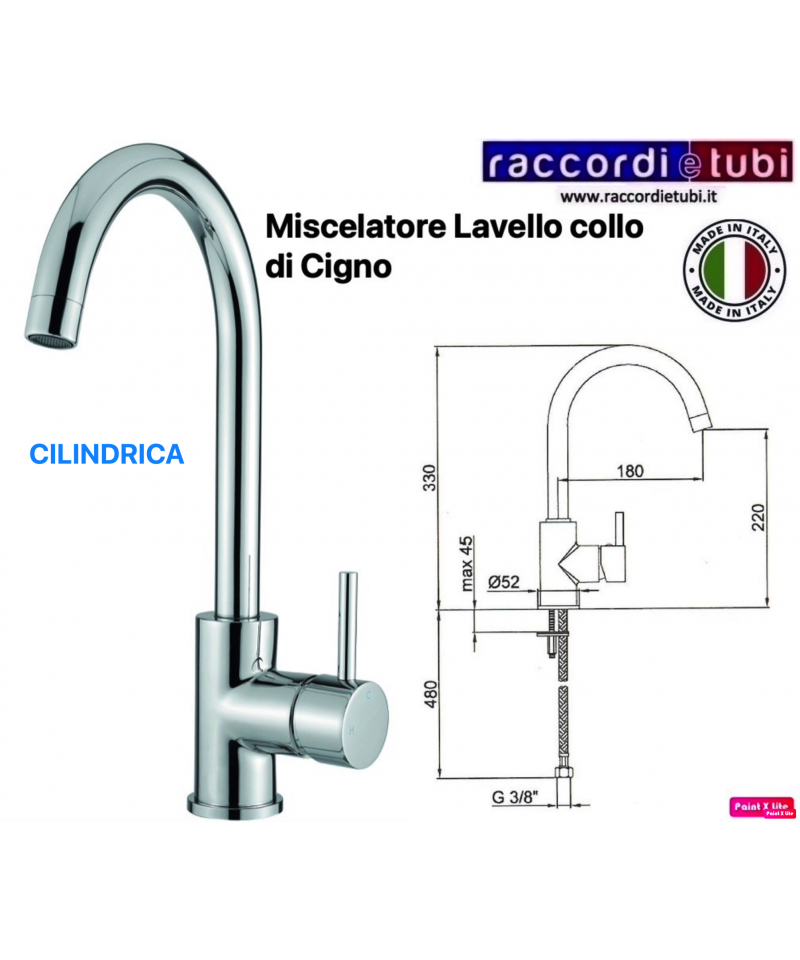 MISCELATORE LAVELLO CILINDRICA COLLO A CIGNO GIREVOLE