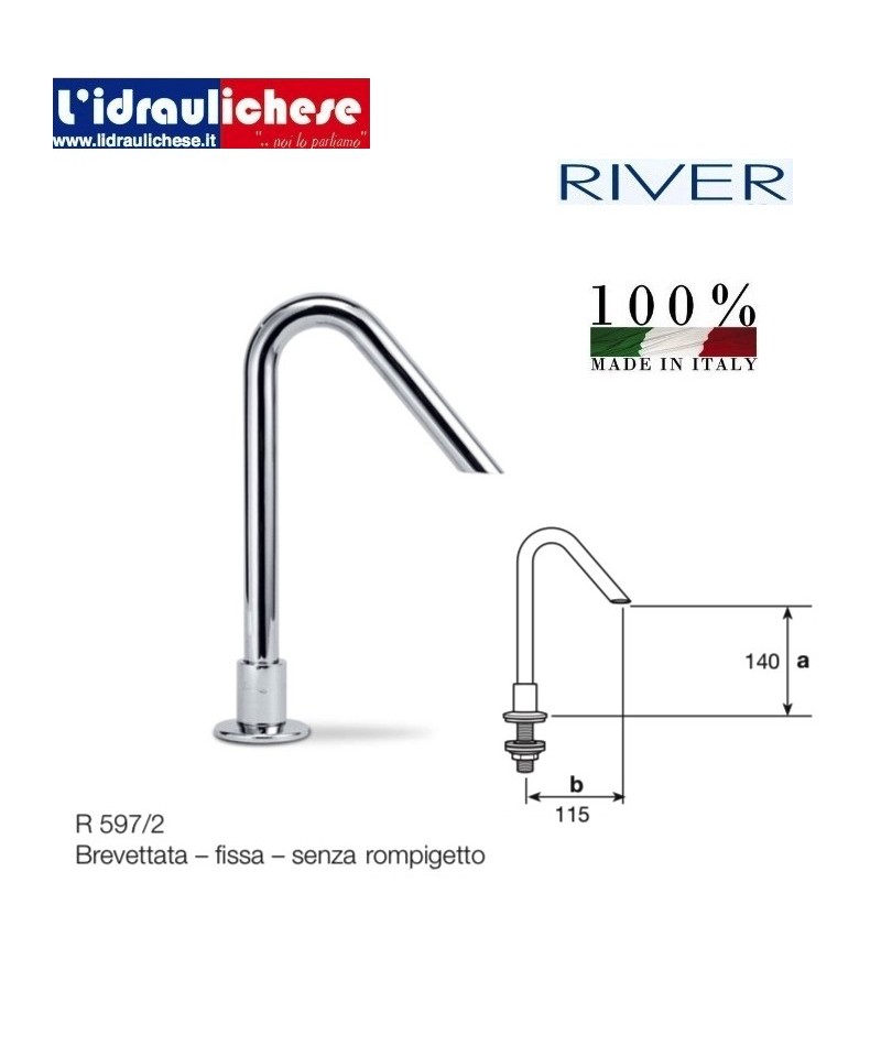 Brevettato – bocca di erogazione ssa senza rompigetto per la vamani – ottone lucidato e cromato – attacco Ø 1/2” – rosetta Ø 50 – foratura mm. 21 – incorporato riduttore di portata di 7 litri/minuto facilmente ispezionabile