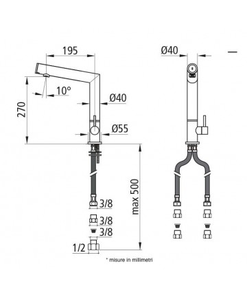 - Flessibili in acciaio inox 1/2" con guarnizioni filtro - Aeratore orientabile