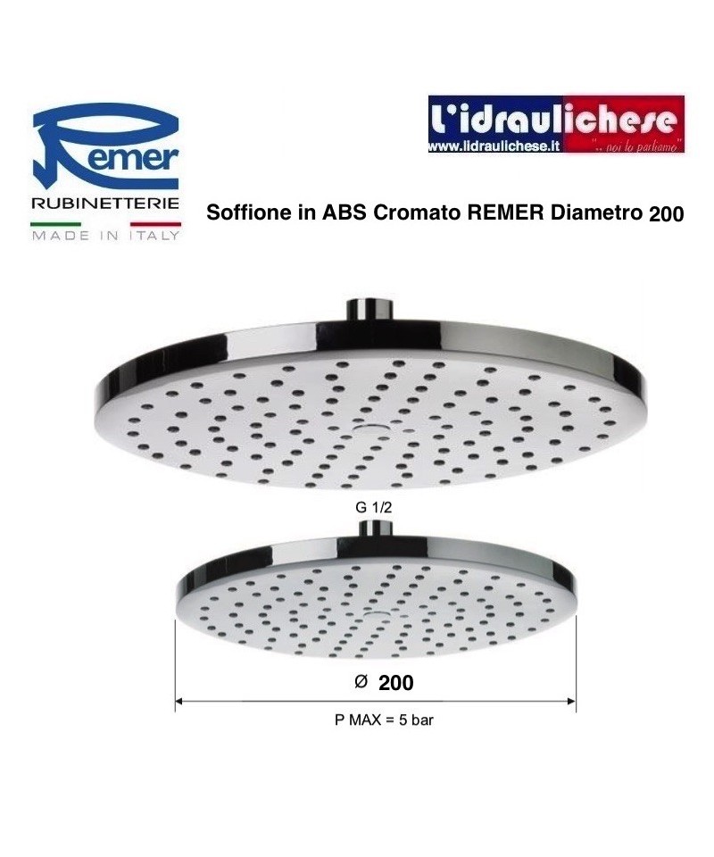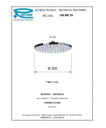 | SOFFIONE DOCCIA MINIMALE Ø 20 cm in abs lusso, cromato, con 50 getti in silicone autopulenti e anticalcare |