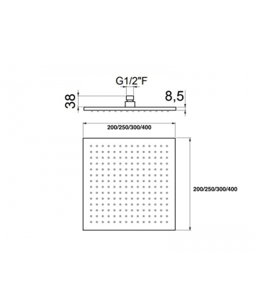 Disponibili nelle misure 200 x 200, 250 x 250, 300 x 300 e 400 x 400 mm; sono abbinabili ad una vasta gamma di bracci doccia.