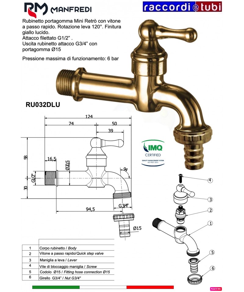 IDRANTE PORTAGOMMA CON CHIUSURA A SFERA DIAMETRO 1/2''