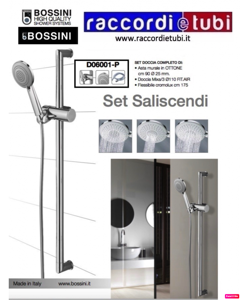 Set composto da: asta doccia metallica D.22 mm. da 60 cm. con