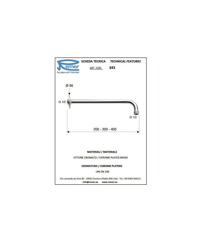 BRACCIO DOCCIA IN OTTONE PESANTE CM.40 REMER