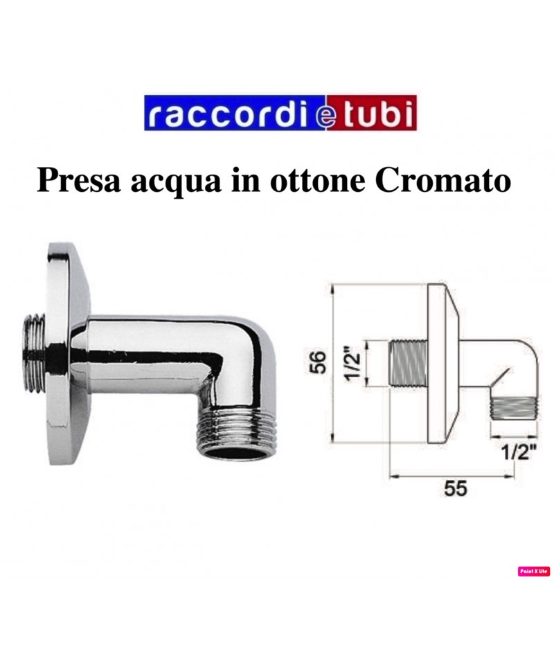Presa d'acqua con sagoma "tonda" per collegamento impianto tubo flessibile gruppo doccia: metallo cromato, attacchi da 1/2" maschio diam. 50 mm