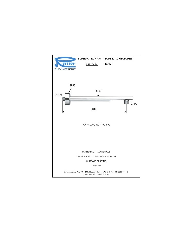 Misure:Sporgenza mm.360 Diametro braccio mm.18 Diametro attacco 1"1/2 Diametro attacco 2"1/2 Diametro rosetta mm.55