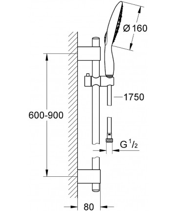 160 mm. con portata limitata a 9,5 lt/min., fl essibile silver da 175
