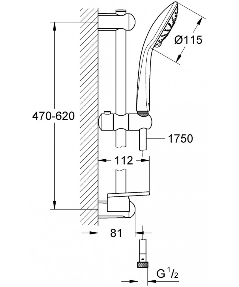 Set composto da: asta doccia metallica D.22 mm. da 60 cm. con