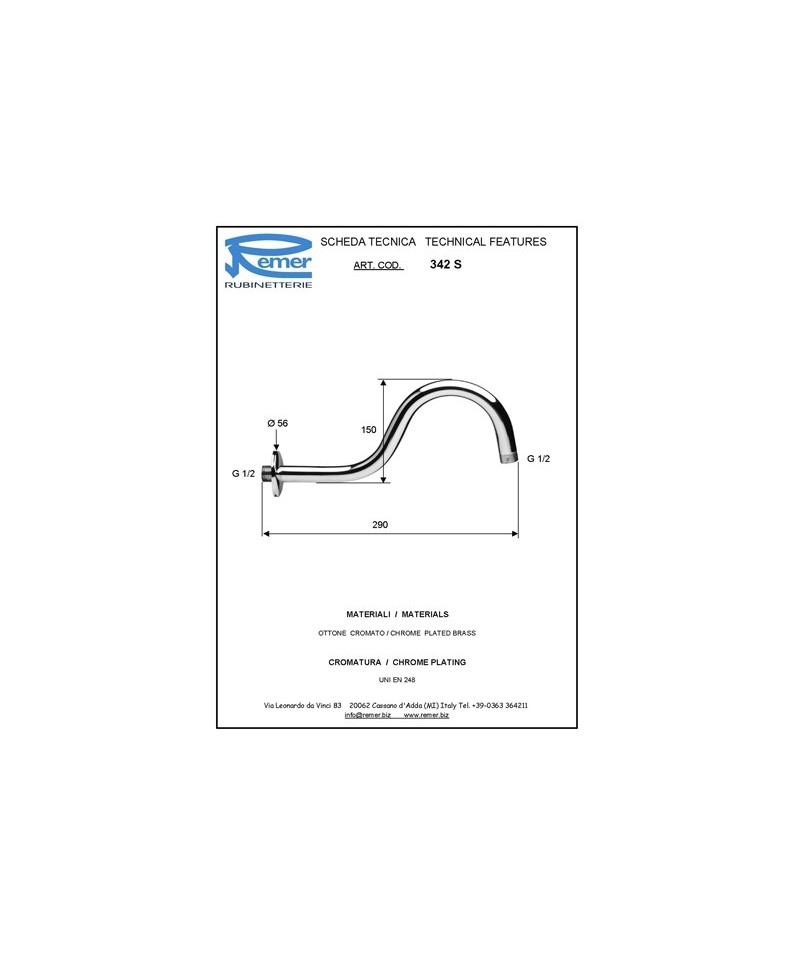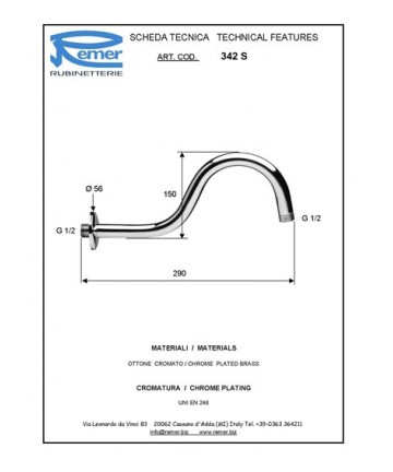 BRACCIO DOCCIA IN OTTONE CROMATO