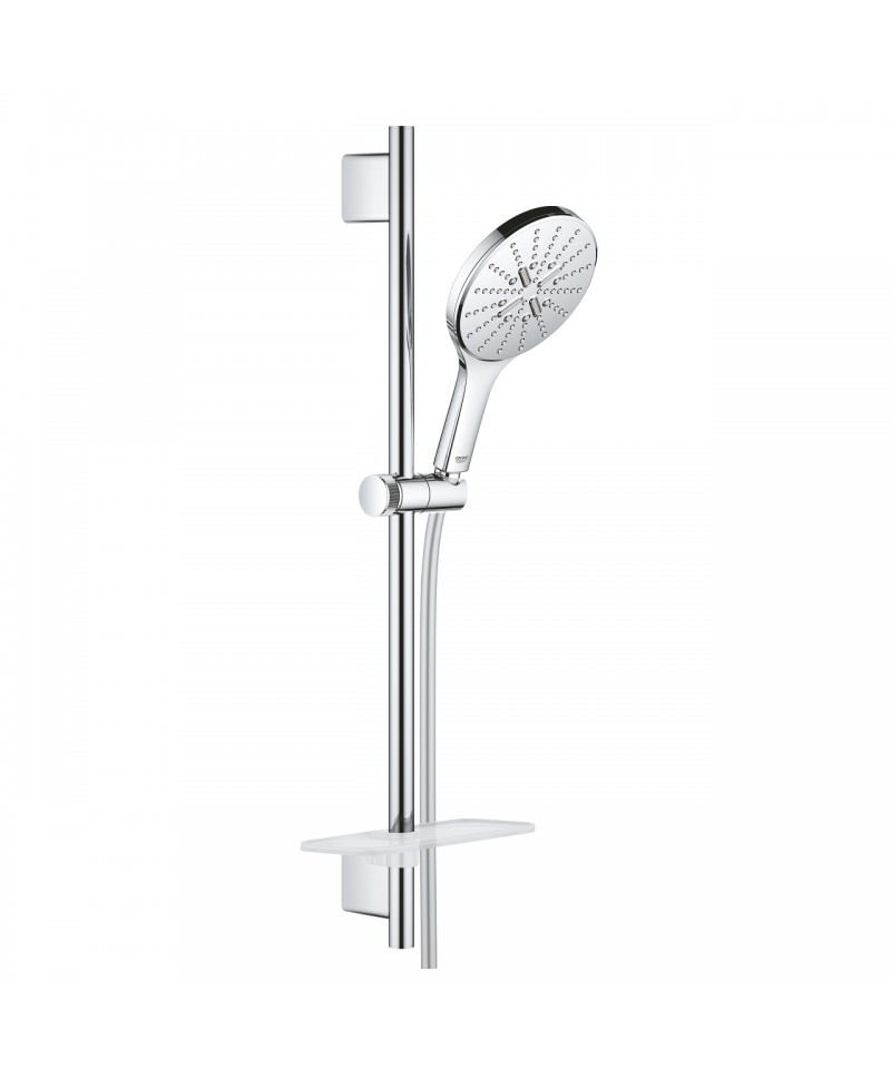 Perché non far fare alla doccia un immediato salto di qualità con la slanciata ed elegante manopola doccia GROHE Rainshower 150 SmartActive dotata di un generoso soffione dal diametro di 150 mm? Con l’affidabilità del Made in Germany, è completa di flessibile antitorsione TwistFree Silverflex (1750 mm), asta (600 mm) e mensola GROHE EasyReach per organizzare lo spazio della doccia. Propone anche numerose opzioni tecnologiche innovative. GROHE SmartTip, un dispositivo di controllo ergonomico sul retro della leva, assicura il controllo del tipo di getto con la punta delle dita: il vibrante GROHE ActiveMassage, il nuovo standard di massaggio rivitalizzante, il rinvigorente Jet e il morbido Rain, delicato come una leggera pioggia estiva. Quando chiudi l’acqua, GROHE DripStop minimizza i fastidiosi sgocciolamenti con i getti Rain e Jet. Grazie a GROHE DreamSpray, inoltre, il flusso da ogni ugello è perfettamente bilanciato per la massima soddisfazione. E gli ugelli anticalcare in silicone SpeedClean sono anche facilissimi da pulire. La funzione GROHE EcoJoy, che limita il flusso di acqua a 9,5 l/min senza compromettere le prestazioni, è protetta dalla finitura antigraffio GROHE StarLight (cromo) che rimane brillante per anni. Infine il sistema Inner WaterGuide (Isolamento del canale di acqua interno) impedisce il surriscaldamento della superficie, proteggendo sia le pelli sensibili che la cromatura. L’installazione è incredibilmente facile: il sistema GROHE QuickFix Plus permette di utilizzare i fori esistenti mentre GROHE TileFix assicura la flessibilità necessaria per poter regolare la profondità dell'asta, in modo da ottenere la distanza corretta e ottenere l’installazione perfetta anche in bagni solo parzialmente piastrellati. Con il set asta doccia GROHE Rainshower 150 SmartActive, lo slanciato design moderno incontra prestazioni lussuose!