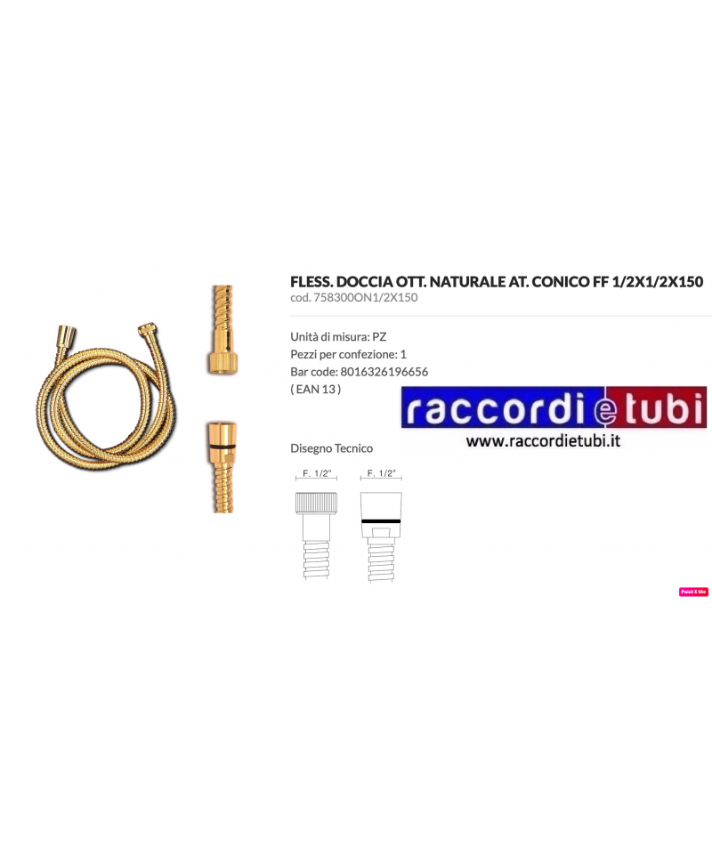 FLESSIBILI DOCCIA DORATI AT.CONICO FF 1/2x1/2x150cod. 758300DO1/2X150