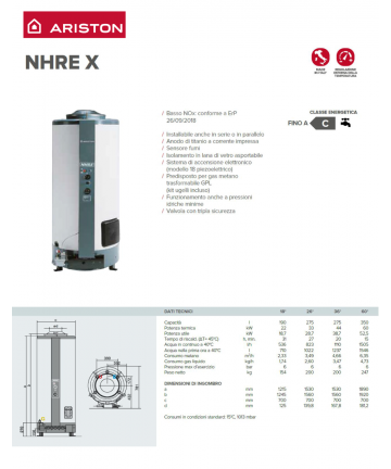 Scaldacqua a pavimento a gas ad accumulo Low NOx. Da 22 a 60 kW di potenza termica, è disponibile in 3 capacità diverse: 190, 275 e 350 litri.