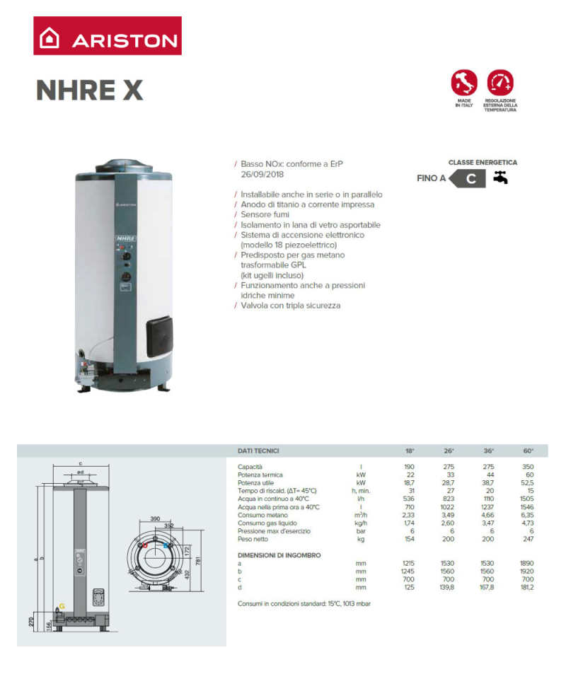 - serbatoio vetroporcellanato internamente (protezione da corrosione con anodo di magnesio)