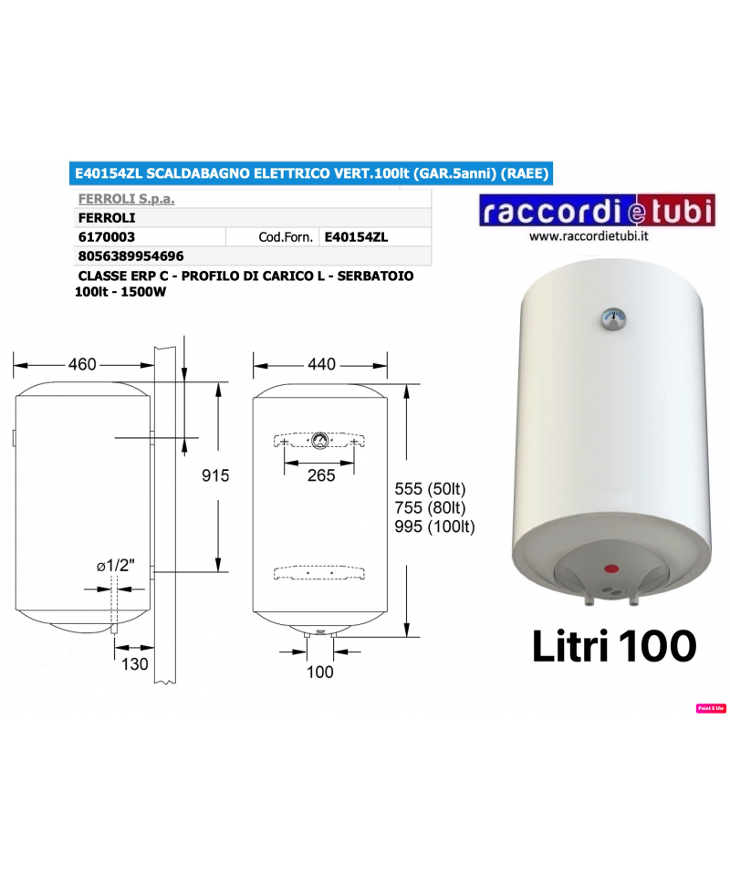 SCALDABAGNO RADI LT.100 ELETTRICO VERTICALE 5 ANNI