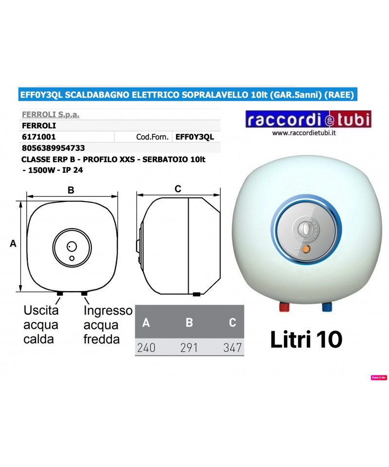 SCALDABAGNO RADI LT.10 ELETTRICO SOTTO LAVELLO 2 ANNI