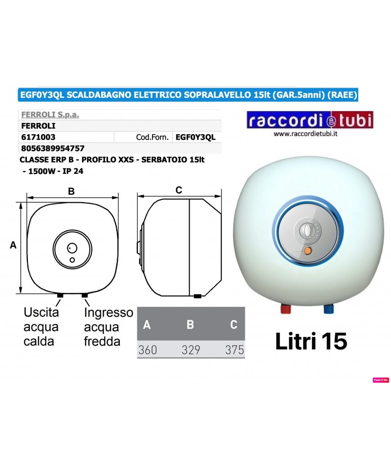 SCALDABAGNO RADI LT.15 ELETTRICO 5 ANNI