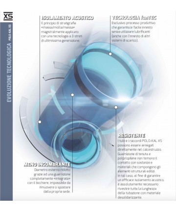 Una novità tecnologica assoluta per l’istallazione di impianti di scarico! POLO-KAL XS è il primo sistema di scarico insonorizzato in polipropilene (PP) di colore blu RAL 5014 coestruso a 3 strati con giunzione “FunTEC”. Si tratta di un’esclusiva tecnologia produttiva che permette di realizzare la guarnizione di tenuta direttamente stampata nel bicchiere. Questo permette di ottenere innumerevoli vantaggi: