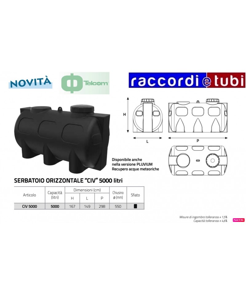 SCHEDA TECNICA SERBATOIO DA ESTERNO modello VERTICALE Materiale: serbatoi da esterno in monoblocco di polietilene lineare ad alta densità (LLDPE), dotati di tappo di ispezione a vite con sfiato e fori di scarico e svuotamento totale. Funzione: contenitori utilizzati per lo stoccaggio di acque potabili e meteoriche ed altri liquidi alimentari. L’elevata resistenza e la bassa reattività del polietilene lineare ad alta densità permette l’utilizzo dei serbatoi per il contenimento di diverse tipologie di fluidi (vedere la scheda di compatibilità del PE ai fluidi). Uso e manutenzione: le cisterne sopportano sbalzi di temperatura esterna da – 20 °C a 80 °C, non sono soggette a deterioramenti nel tempo ed i materiali utilizzati assicurano la massima affidabilità per quanto riguarda problemi di corrosione ed ossidazione. La struttura in monoblocco garantisce robustezza e solidità in quanto non sono presenti saldature che potrebbero indebolire le parti sollecitate da tensioni interne. Per esigenza di installazione è possibile praticare fori nei serbatoi sugli appositi piani. Le superfici lisce dei serbatoi consentono una facile manutenzione, la leggerezza un facile trasporto ed installazione. Inoltre il costo è nettamente inferiore al metallo, al cemento e alla vetroresina. Disponibilità colori: di serie: azzurro; su richiesta: verde, terracotta, grigio. Modularità: grazie all’installazione di giunti flangiati in PE è possibile collegare più serbatoi per ottenere elevati accumuli.