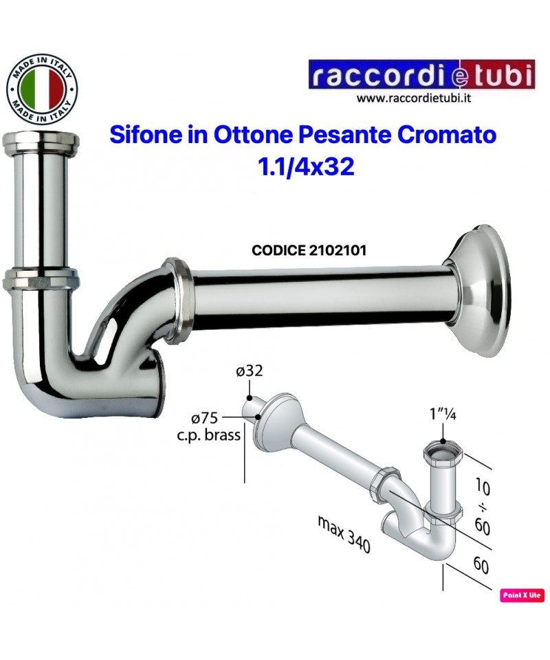 SIFONE IN OTTONE PESANTE CROMATO VERSIONE A "S" CON ISPEZIONE LATERALE