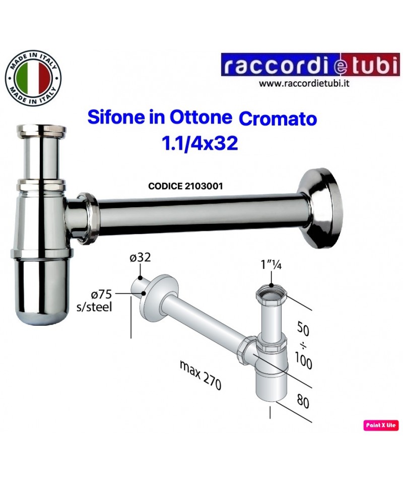 SIFONE A ''BOTTIGLIA'' PER LAVABO IN ABS CROMATO DIAMETRO 11/4''x32mm