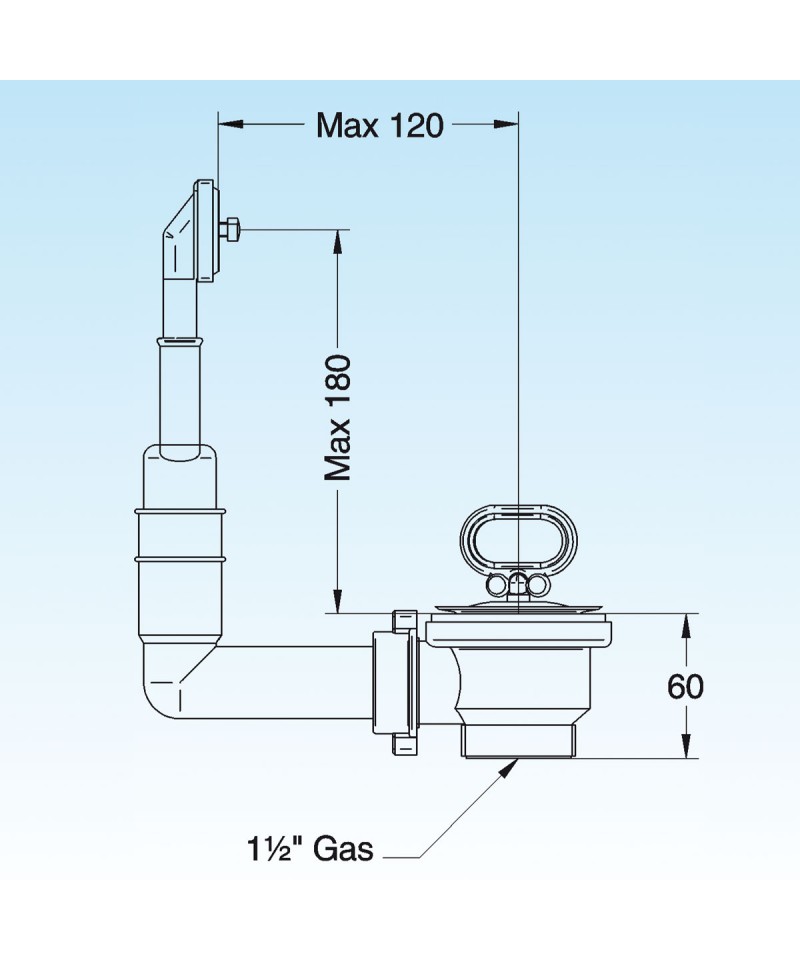 PILETTA LIRA DA LAVELLO INOX 11/2''x70 CON TROPPOPIENO ART.1711.008