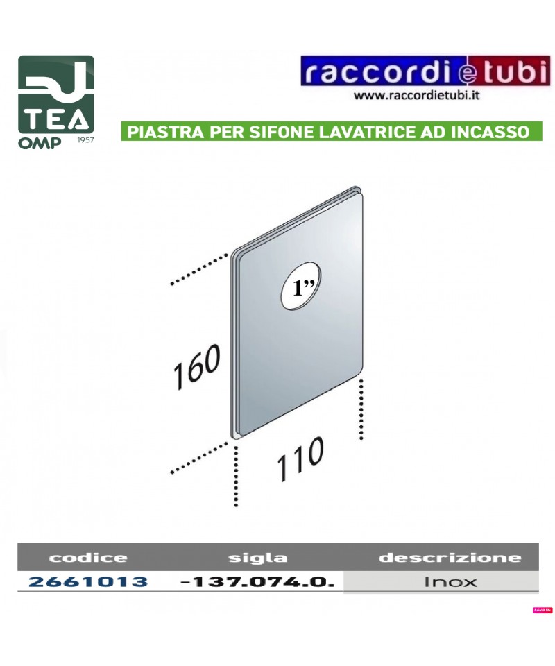 PIASTRA INOX PER SIFONE LAVATRICE AD INCASSO cm11x16 FORO DIAMETRO 1"