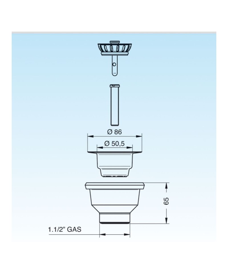 PILETTA IN PP PER LAVELLI INOX 11/2''x70 SENZA TROPPOPIENO TAPPO mm.50