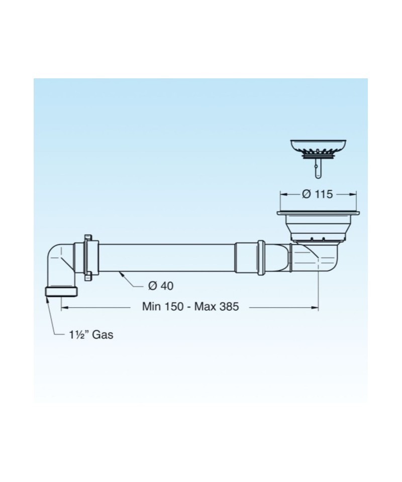 Sifone salvaspazio per lavelli auna vasca diametro 1.1/2x40