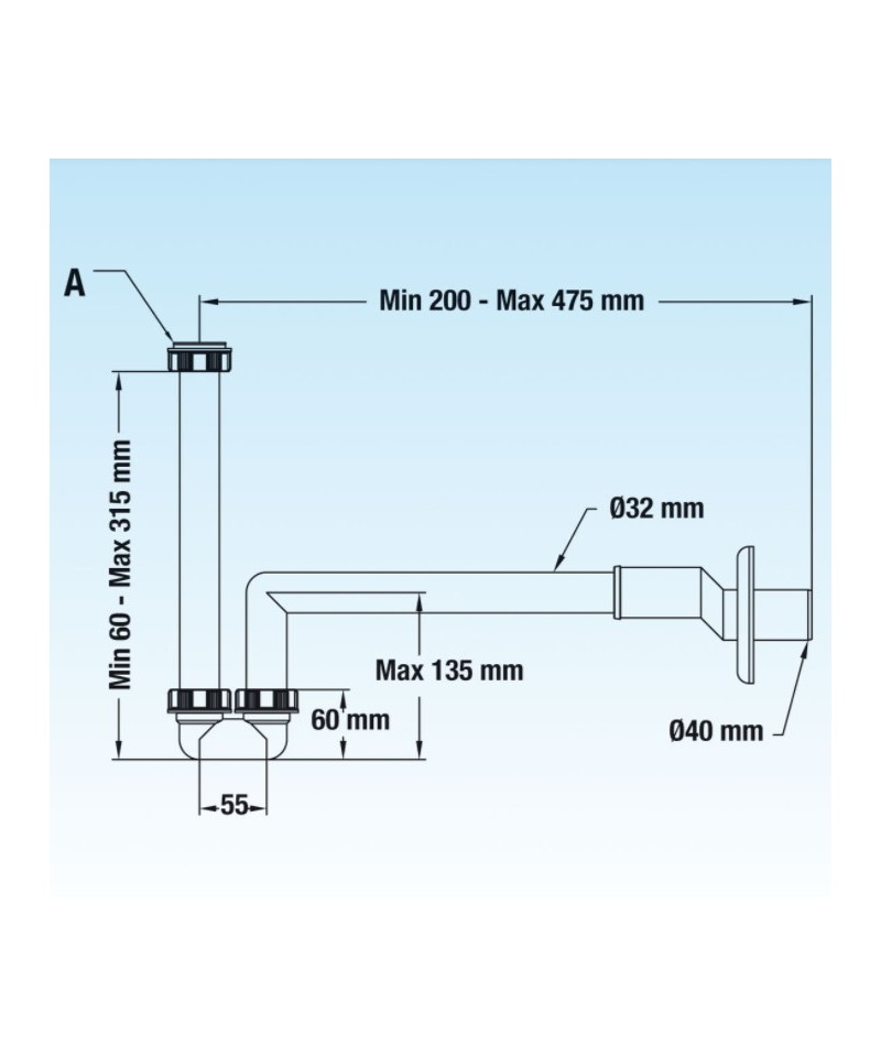 Sifone tipo “M” per lavelli ad una vasca, senza piletta, completo di raccordi